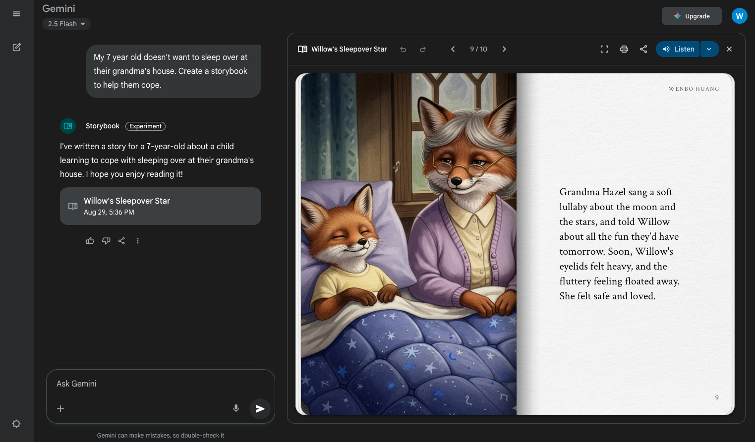 Gemini Storybook is a tool developed by Google, released in August 2025. It creates personalized, illustrated stories about anything, with read-aloud narration. Just describe the story you want, add files or photos if you like, and Gemini makes a unique 10-page storybook. It uses Gemini's models in a straightforward way. It's free in the Gemini app as a Gem, but only in some countries, like normal Gemini model usage. If you haven't tried it, give it a go first.
